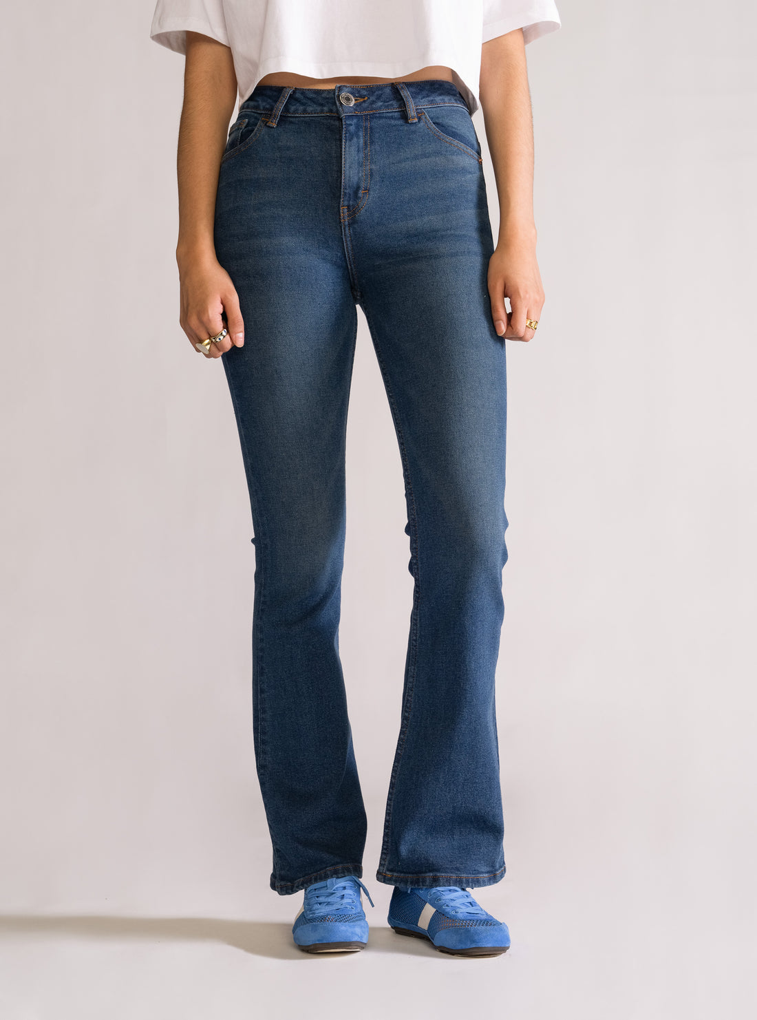 MEDIDAS DEL MODELO: Altura: 1.73m Peso: 135lb Talla: S WDD-528 Jeans cintura alta - Acampanado...